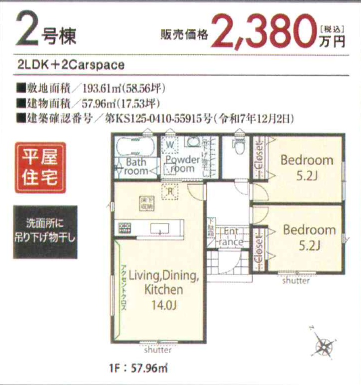 | 敷地全体面積 | 延べ床面積 | 57.96m² | |