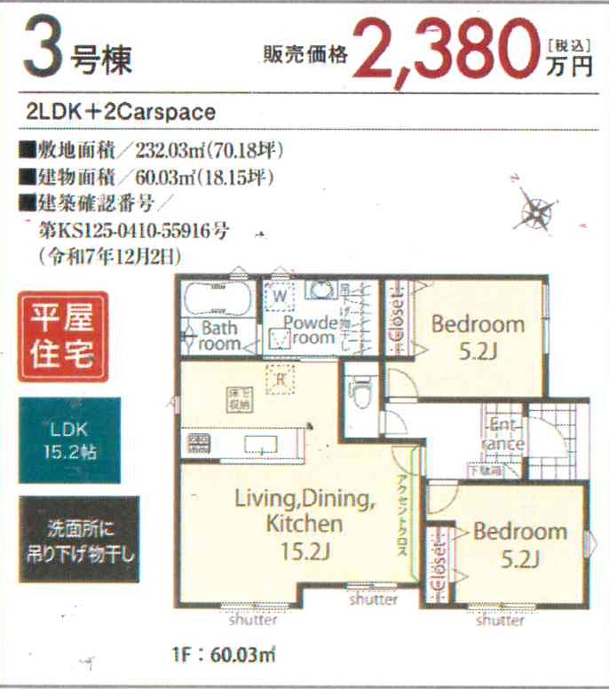 | 土地権利 | 所有権 | 接道状況 | 二方(除角地) |
